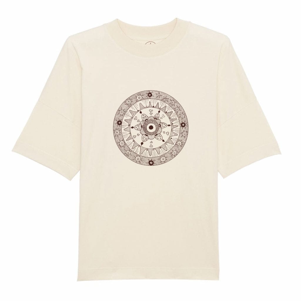 La camiseta Haya Mandala Brown refleja la conexión entre el arte y la naturaleza a través de un diseño geométrico inspirado en la armonía de la geometría sagrada.